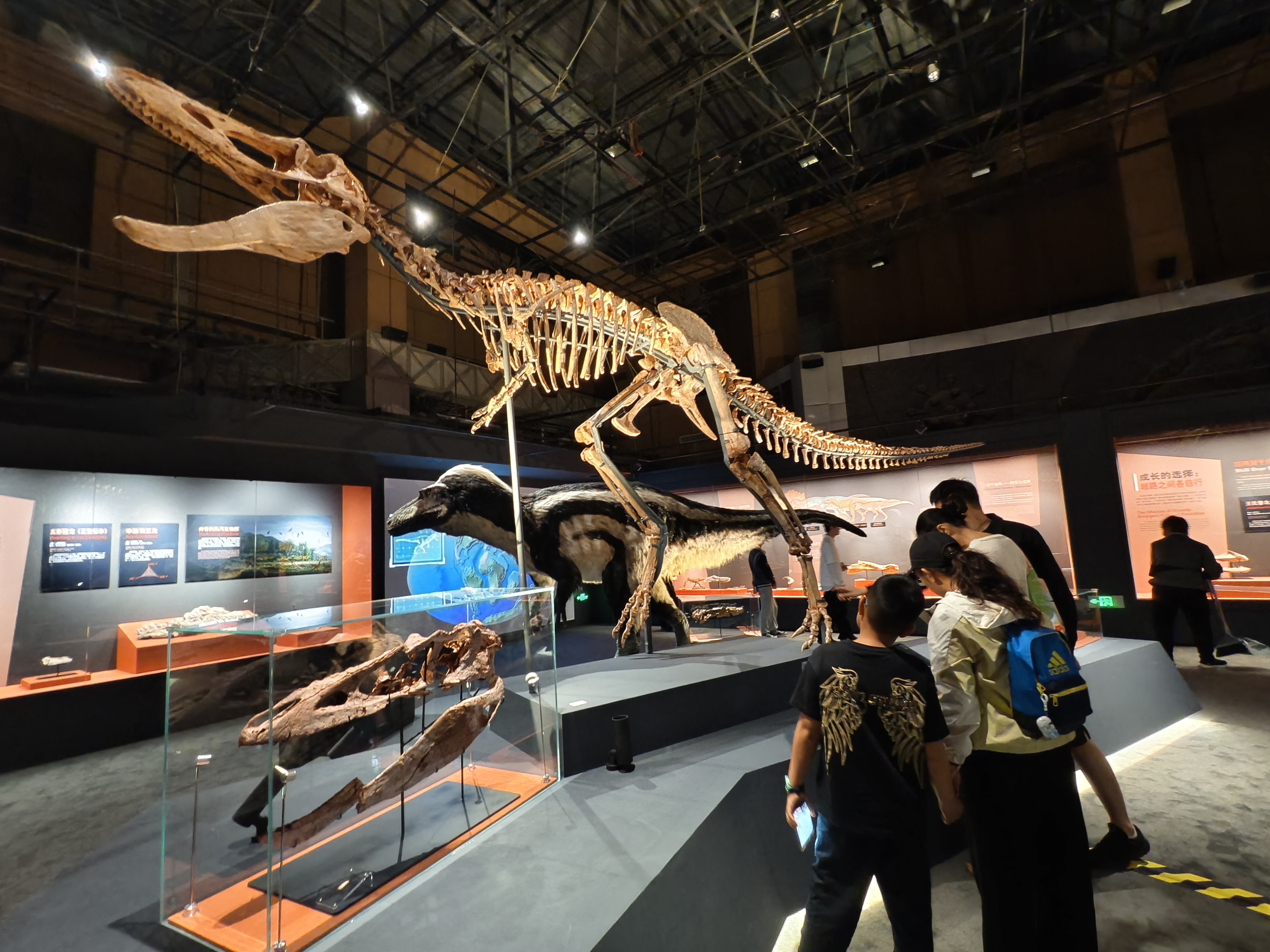 據了解,展覽以白堊紀陸地頂級掠食者霸王龍化石為核心,通過化石標本與科學復原相結合的方式,系統呈現這一史前物種的演化歷程與科學價值。百餘件珍貴展品中,化石佔比超過85%。展覽不僅聚焦北美洲霸王龍,還特別呈現華夏暴龍類家族成員。匯聚了中國龍、永川龍、帝龍、羽王龍、虔州龍、諸城暴龍等中生代頂級掠食者標本,集中展現不同地域暴龍類恐龍的行為特徵與多樣性演化。據悉,這是國內首次系統、完整地展示中國暴龍類家族。此外,展覽還設計製作了多件科學復原模型,真實還原霸王龍及其他代表性成員的生活習性與生存策略。