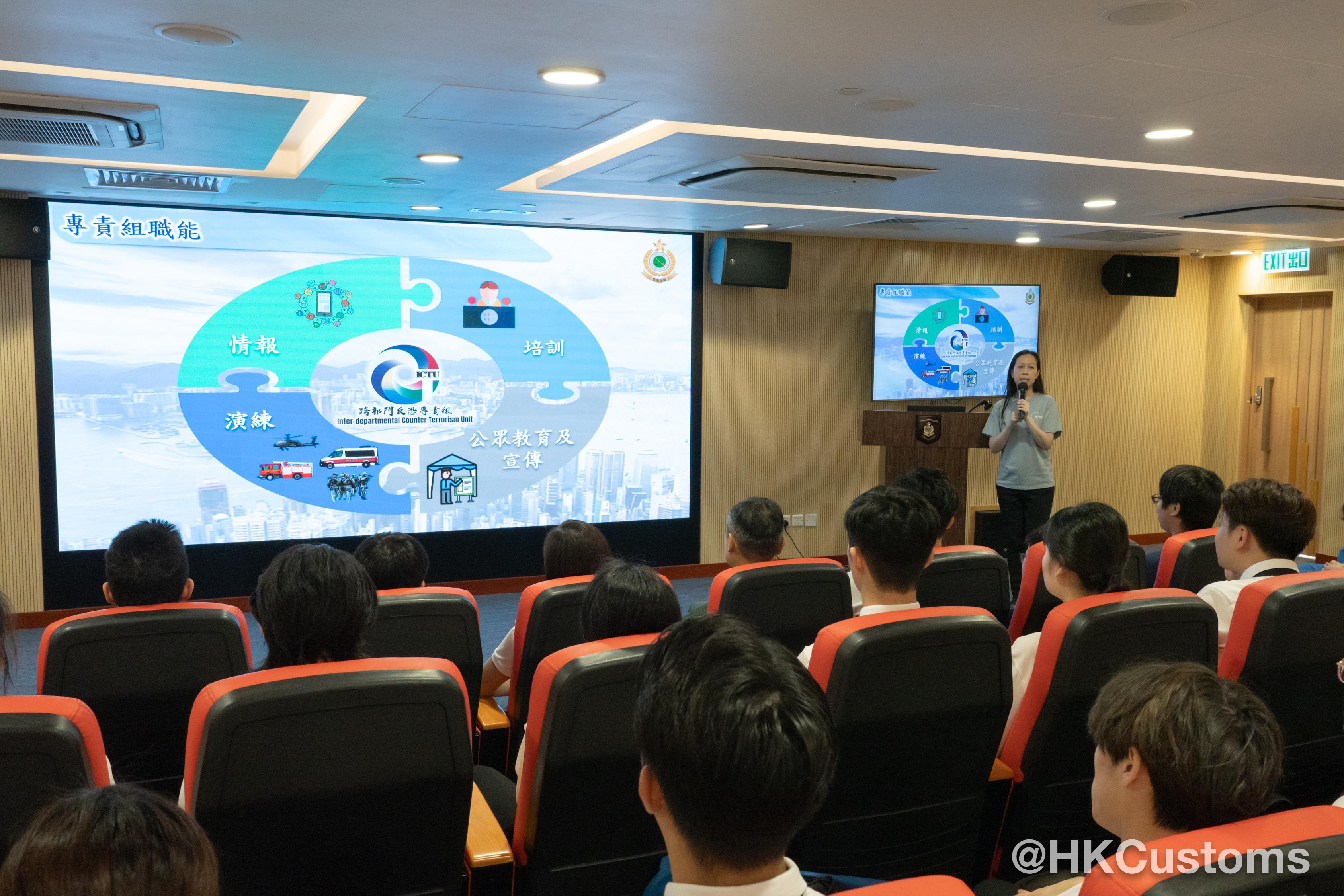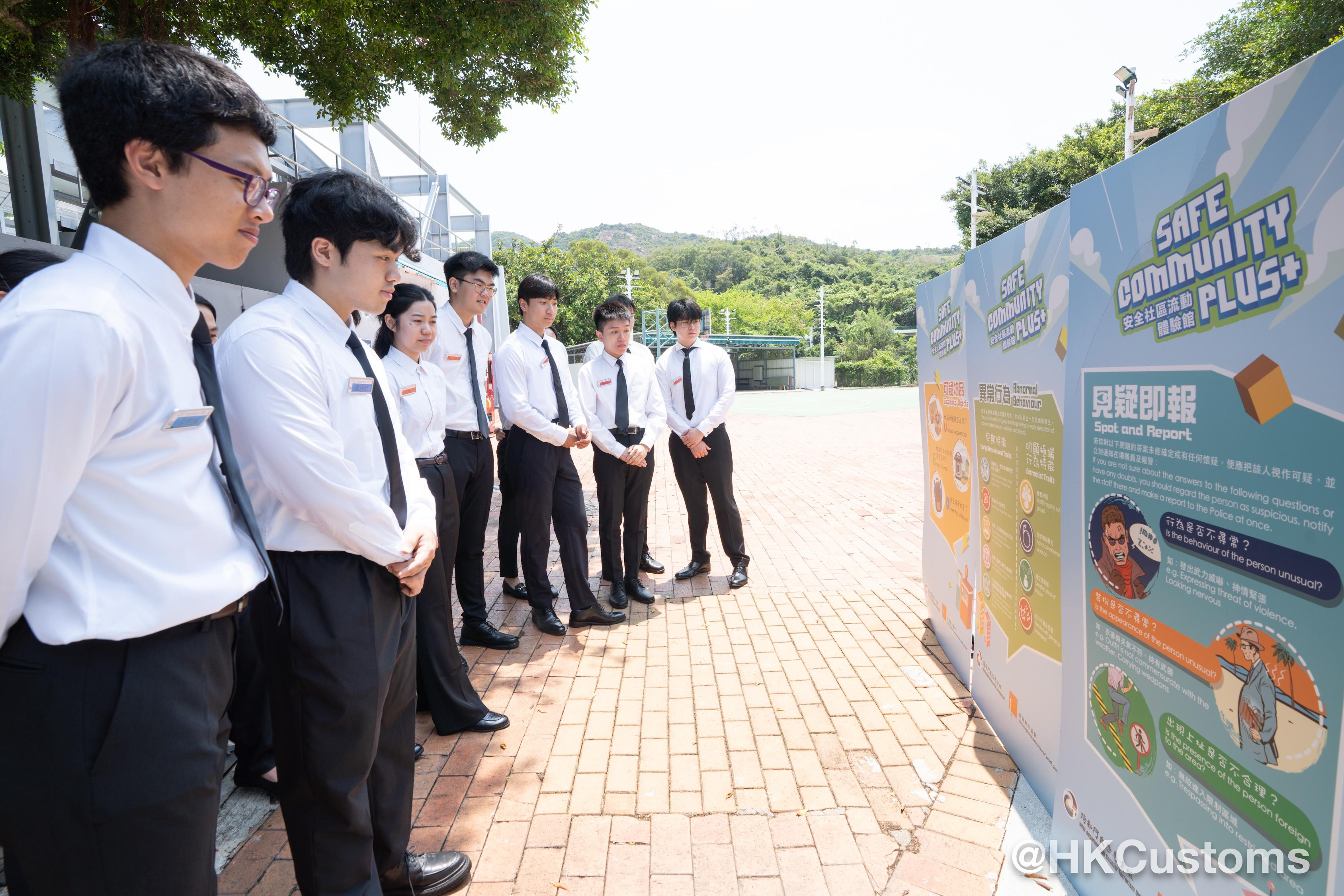 70名紀律部隊青少年團隊隊員前往海關訓練學院,參加「安全社區」教育講座。他們深入了解跨部門反恐專責組的工作,以及如何構建安全社區,並學習在遇到突發情況時如何應用「閃、避、求」的應變指引。