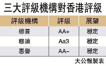【大公報訊】記者楊慕輝報道:評級機構標準普爾確認本港的長期信貸評級「AA+」、短期信貸評級「A1+」不變,前景展望亦維持「穩定」。