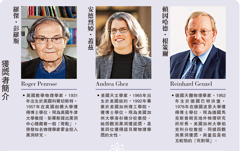 •英國數學物理學家,1931年出生於英國科爾切斯特,1957年在英國劍橋大學獲得博士學位,現為英國牛津大學教授。彭羅斯提出黑洞中心隱藏着一個「奇點」,啟發知名物理學家霍金投入黑洞研究。