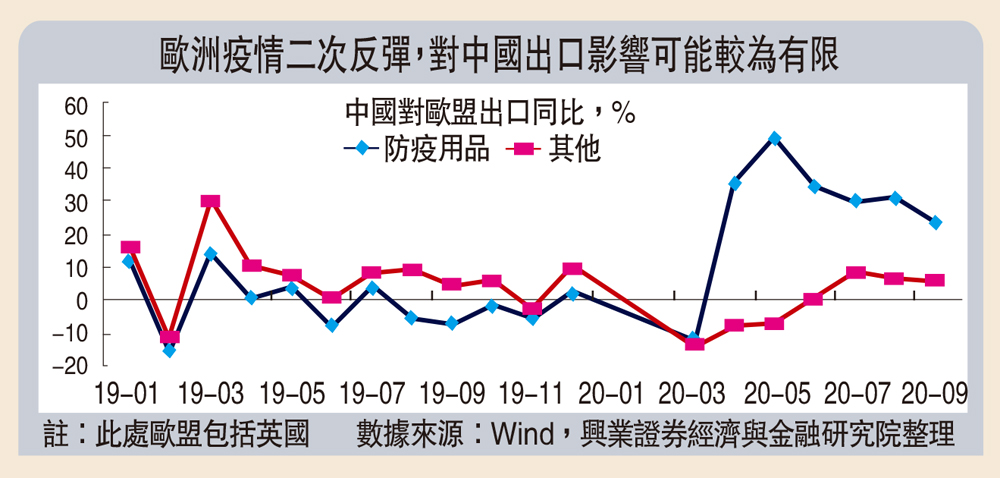 對中國的影響:短期市場情緒上或有擾動,中期經濟整體影響較有限。短期來看,海外疫情的反覆和海外市場的波動,可能會對整體的風險偏好產生壓制,但系統性風險目前來看較為有限。中期來看,美歐疫情二次反覆,對中國經濟(出口)的影響目前可能也比較有限。