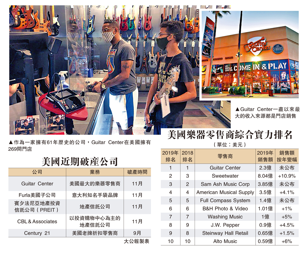 接踵而來/收入依賴門市 美最大樂器商破產\大公報記者 劉嘉儀