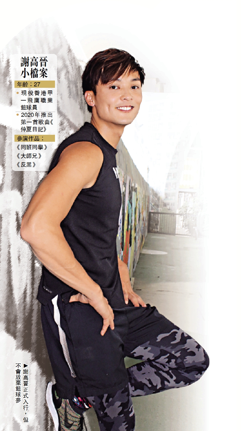 現年27歲,擁有1.95米身高的謝高晉,外貌陽光俊朗。中學畢業後,他參與平面模特兒的工作,間中拍攝電影,早前參加內地的真人騷節目。今年謝高晉正式踏入演藝界,推出第一首歌曲《仲夏日記》。演藝工作以外,他有另一個身份─香港職業籃球運動員。\大公報記者 溫穎芝 文、圖