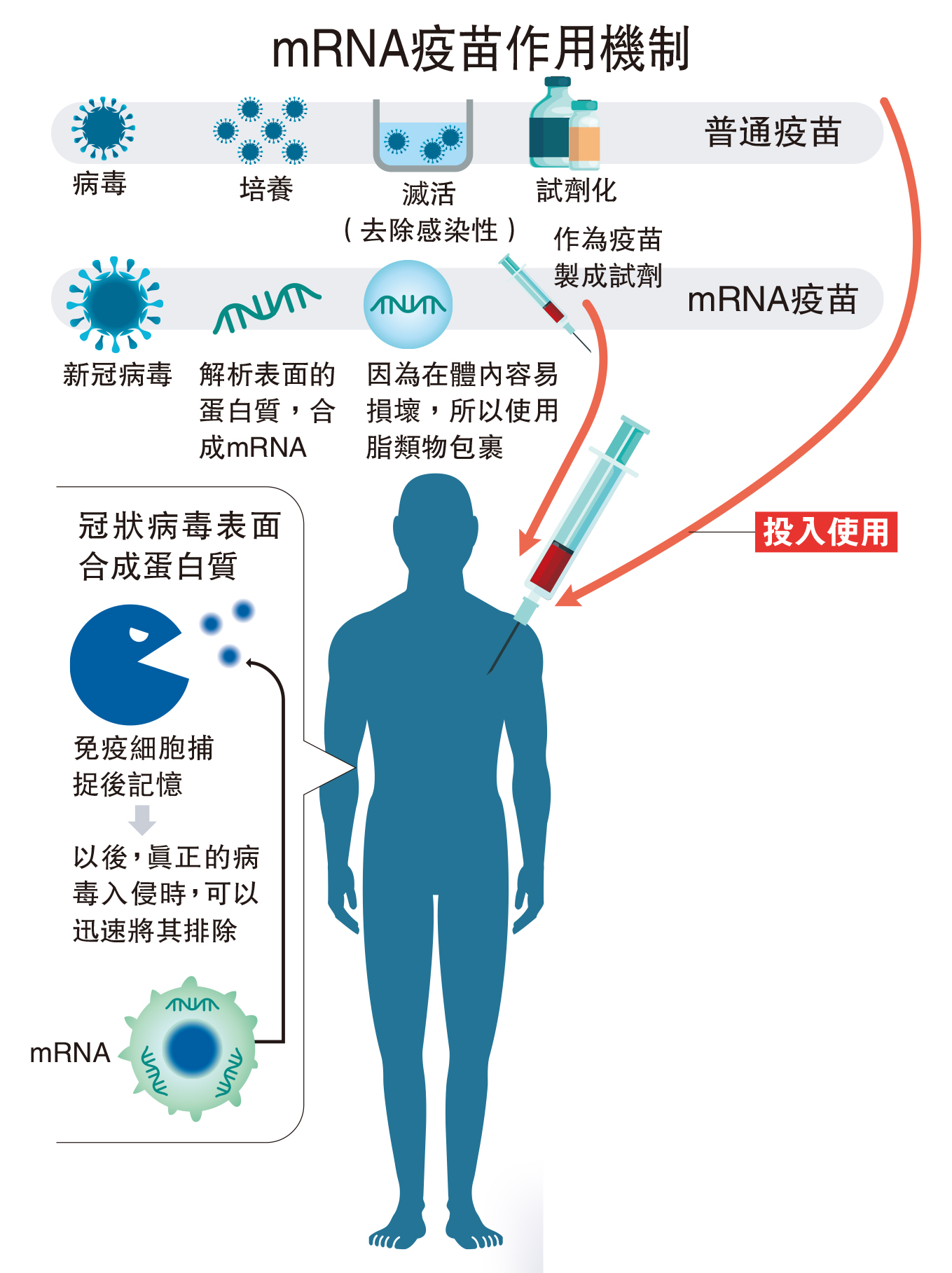 •研發時間大大縮短,mRNA技術是教會人體的細胞如何製造一種類似於病毒的突刺蛋白,然後觸發人體的免疫反應。和其他舊的方法相比,這一方式耗時更短。
