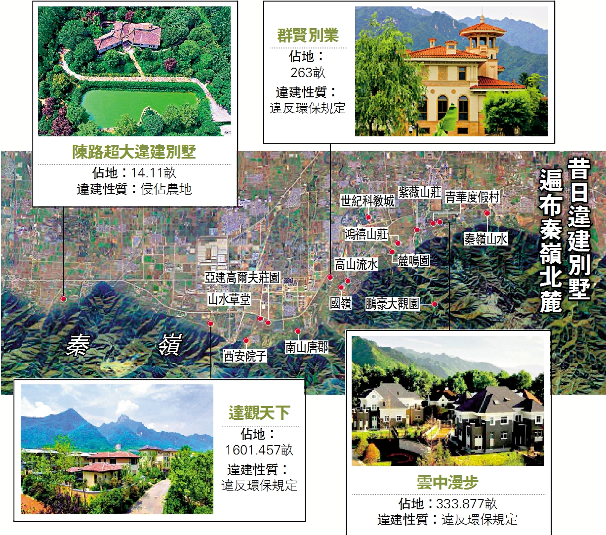 從上世紀末開始,一些商人看準了秦嶺豐富的自然和人文歷史資源,相繼投資了一些項目。基於對秦嶺生態環境的考慮,2003年陝西省出台措施,禁止任何人在秦嶺北麓從事房地產開發、修建商品房和私人別墅,但在西安市決定保留的一些文化旅遊項目中,還是被一些人鑽了空子。在開發商的運作下,市、區、縣,以及規劃、國土部門一路放水,逐漸把旅遊項目演變成為房產和別墅項目。「顯然,這些別墅即使使用各種方式辦全了手續和證照,但根子上仍是違章建築。」