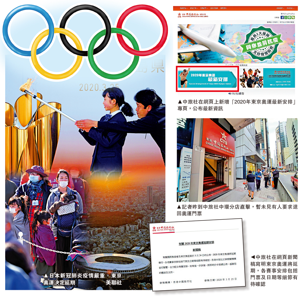 為讓已購買門票的市民知悉最新情況,中旅社昨日在網頁新增「2020年東京奧運最新安排」專頁,實時公布最新資訊。大公報記者進入專頁,見到是一篇新聞稿,寫明各項賽事安排包括門票及日期等細節,有待確認,中旅社正與相關機構聯繫,並感謝市民體諒及支持。
