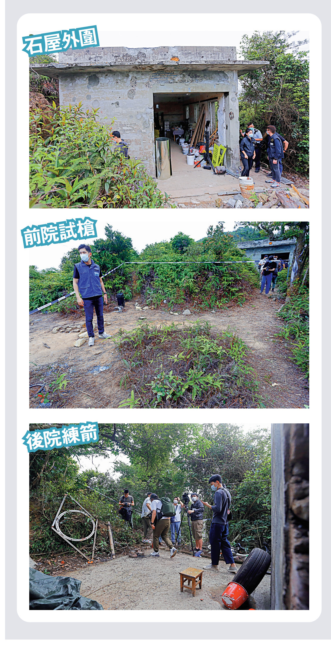據周國強了解,涉事的石屋應是戰時興建,已荒廢多年,過往曾有非法入境者佔據留宿,現在竟被暴徒霸用闢作「兵工廠」。他說,石屋非常接近行山徑,行山客容易走近,一旦接觸到火藥及化學品,發生爆炸時,後果不堪設想。周直斥暴徒罔顧市民安全。