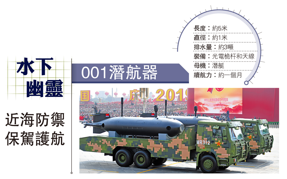 無人作戰體系中,除了空中的無人機,此次閱兵還首次展示了水下的無人潛航器。
