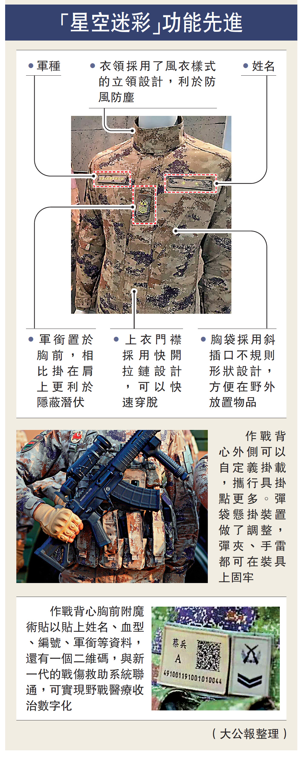 新款「星空迷彩」不僅提高了偽裝效果,而且還有很多人性化設計,更加符合人體工程學原理,穿着更便捷舒適。
