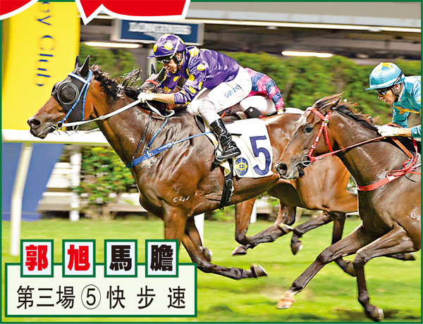 【第三場】第四班、一六五○米。「快步速」(圖5號)季內兩戰谷草一哩非勝則位,而且每一次都是頗蝕章下直路衝到段勁,賽績饒富說服力;上賽田草志在隔紗,相隔一場隨即重遊勝途,有力重拾勝軌。「永益善」勤跑下近期狀態又見冒勇,集結現時評分比上季贏同程時低一分,復現競爭性,提防反擊。「成才」直落三場同程獲一贏兩位,狀態長期維持得穩定,續可名題三甲。「開懷大少」跌落四班開始有迴旋之力,機會不甘後人。