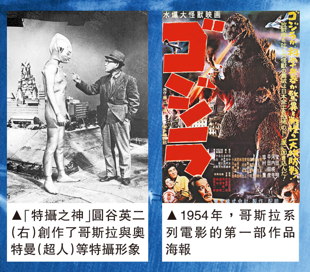 有別於《金剛》採用的定幀拍攝手法,《哥斯拉》開創了一套全新電影類型—特攝片。影片由演員穿上沉重的怪獸皮套進行表演,並配合道具組搭建出來的精細建築模型,呈現出極為逼真的視覺效果。該片攝影指導是「特攝之神」圓谷英二,他曾在二戰期間拍攝《夏威夷及馬來亞海戰》,涉及日軍空襲珍珠港情節。由於片中的軍艦模型過於逼真,美國一度懷疑圓谷英二的真實身份是軍事間諜。戰後在駐日盟軍司令部的施壓下,東寶被迫開除了圓谷英二。圓谷英二其後創立了電影公司「圓谷株式會社」,並在一九六六年打造出日本特攝片的另一大IP—奧特曼(超人)。