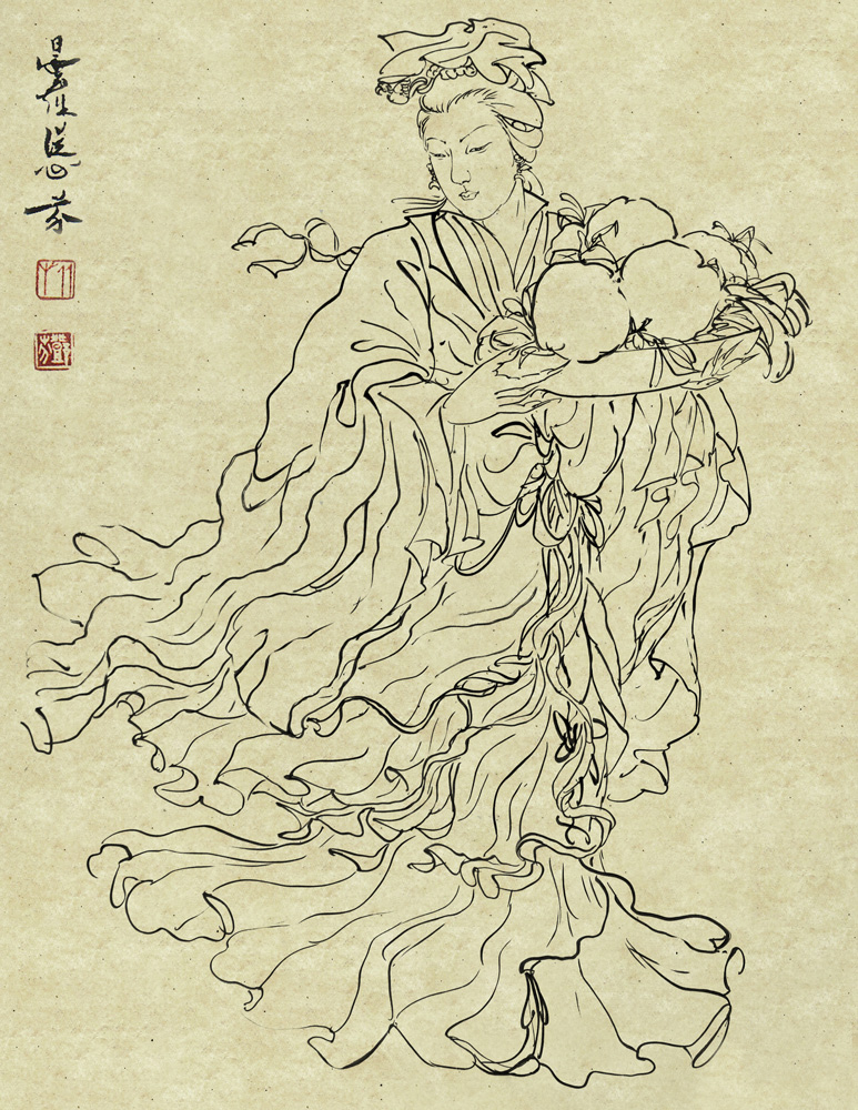 中國白描繪畫,用墨線勾描物像,不施色彩,故又謂之白畫。唐代吳道子是白畫的始祖,其筆法有如流水行雲,運用曲直、粗幼、剛柔、輕重而富節奏的線條,狀寫人物而能衣服飄舉,被稱為「吳帶當風」。名畫家潘天壽嘗謂:「白描稿是全畫中骨線,它決定布局、氣勢、造型、結體、情趣、神態等,而點線面三者中,最難表現的是線,表現對象最明確的也是線。因此,線在中國畫中起的作用,是頭等重要的。」鄧芬對此也有相同見解,一九三四年鄧芬由廣州赴港參加書畫文學社大會,席中發言謂:「至於西洋現代畫法已趨重寫意,其寫意亦重視線條模型,以線條言之,則中國畫取勝多矣,西洋畫之線條,實仿摹中國畫而已。」