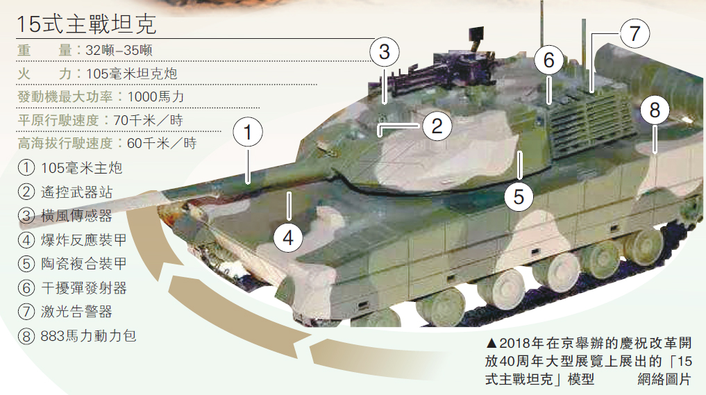 圖:2018年在京舉辦的慶祝改革開放40周年大型展覽上展出的「15式主戰坦克」模型\網絡圖片