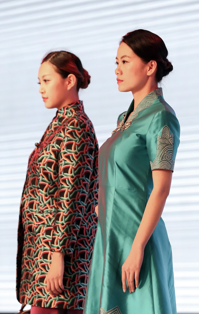 圖:宋錦已應用到服裝等眾多領域。圖為模特展示宋錦時裝/資料圖片