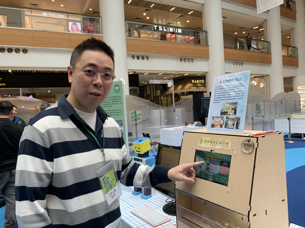 樂善堂余近卿中學老師馬基鏗表示,兩位學生有感市民時常要為垃圾分類而煩惱,有人更因此而卻步,故特意研發出「人工智能回收箱」,將來只需使用一個垃圾桶,便可以達到分類目的。
