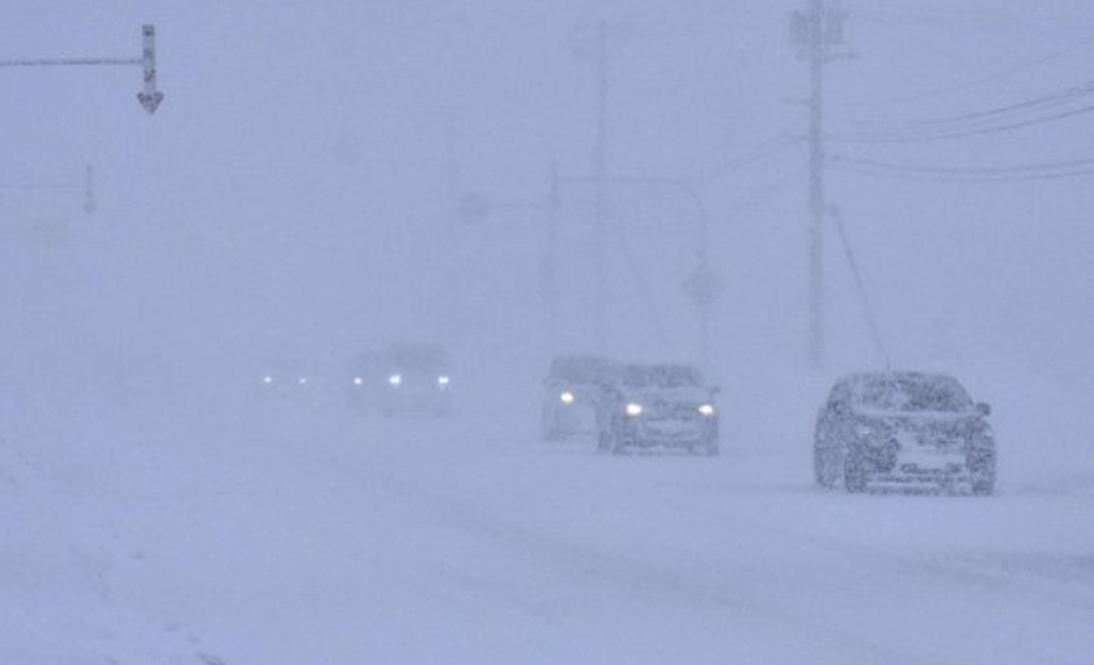 圖:日本北海道21日受暴風雪吹襲,車輛艱難行駛\網絡圖片