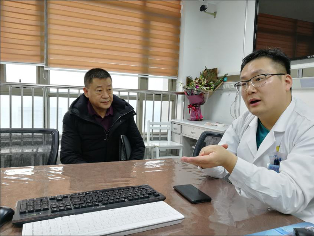 圖:主治醫師郎濤和患者家屬張國權接受大公報記者採訪\應江洪攝