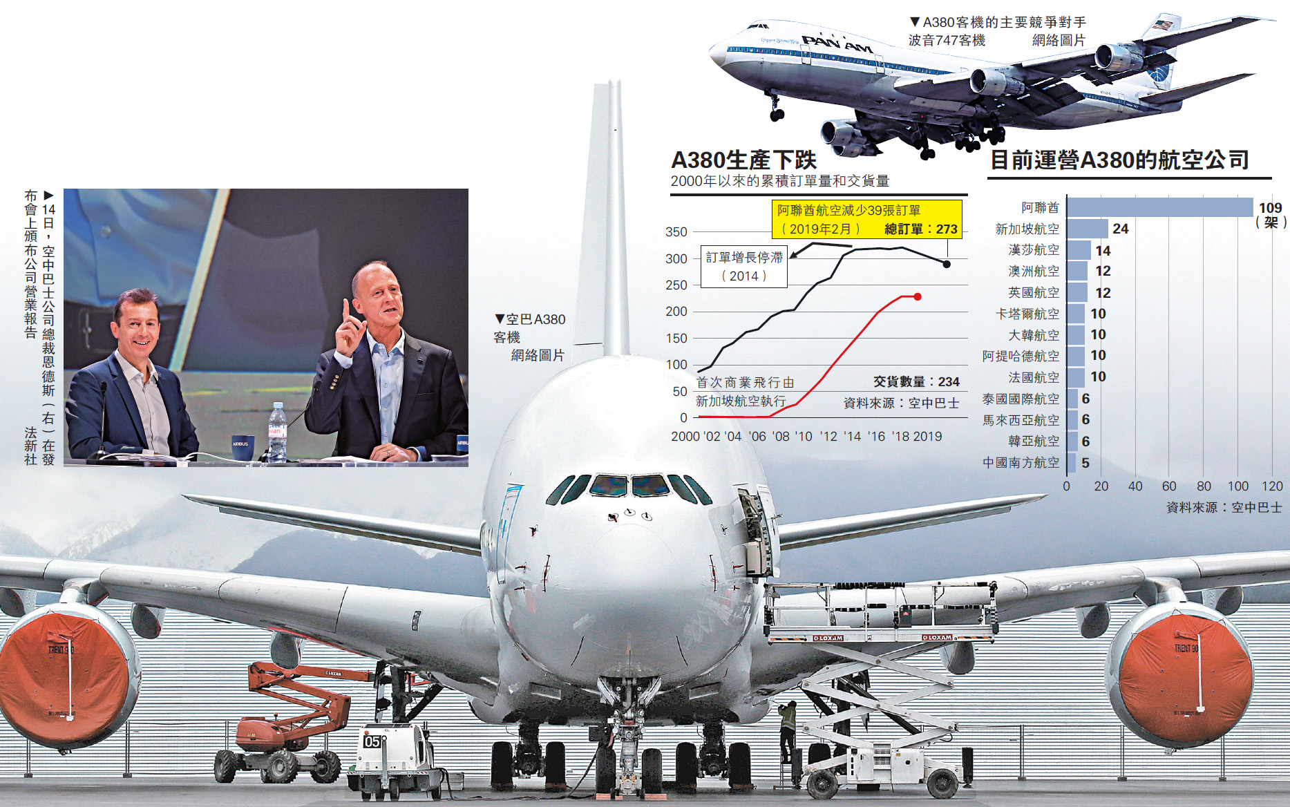 【大公報訊】據法新社、路透社報道:被譽為「空中巨無霸」,並被寄望對商業航空旅行產生革命性改變的空巴A380,即將退出航空業的舞台。歐洲空中巴士公司14日宣布,由於A380銷量不佳,而且該機型的第一大客戶阿聯酋航空削減了訂單量,已沒有繼續生產A380的理由,因此該機型的生產將於2021年停止。