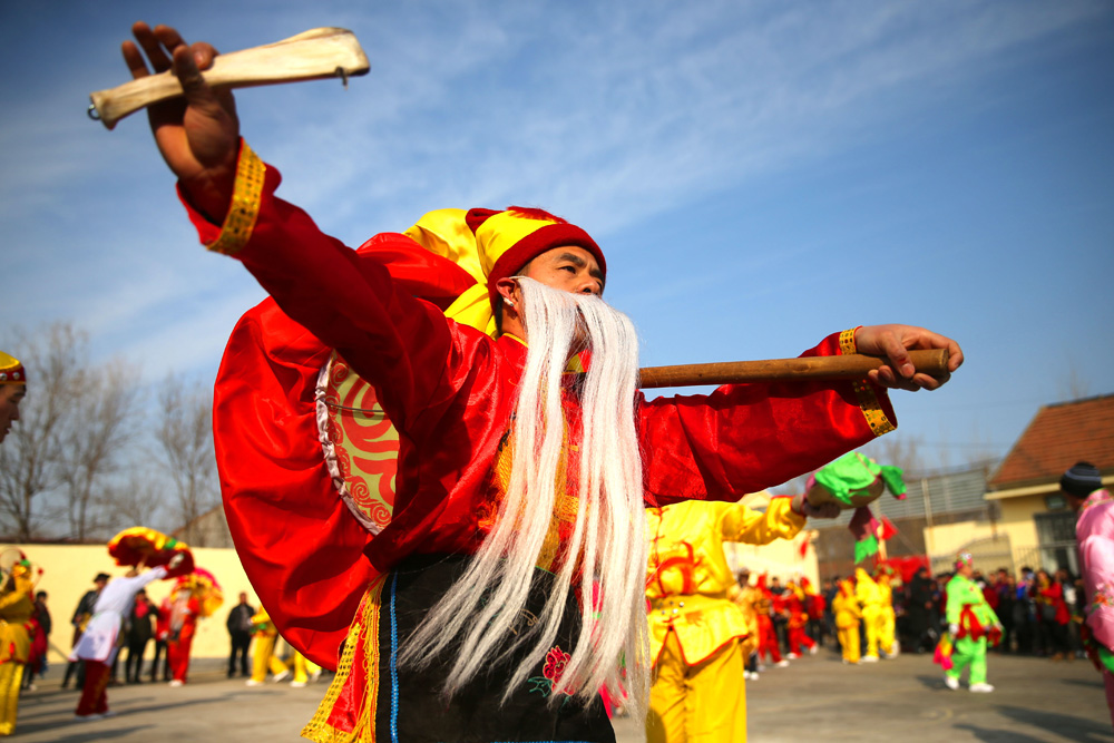 元宵節臨近,2月15日,在山東省陽信縣,多支秧歌隊走村串巷,民間藝人在洋湖鄉為人們表演「鼓子秧歌」,熱鬧迎元宵。活動現場鑼鼓喧天、張燈結綵,舞姿翩翩彩燈紛飛,鼓樂遊樂繁華熱鬧,充滿着濃濃的節日韻味。