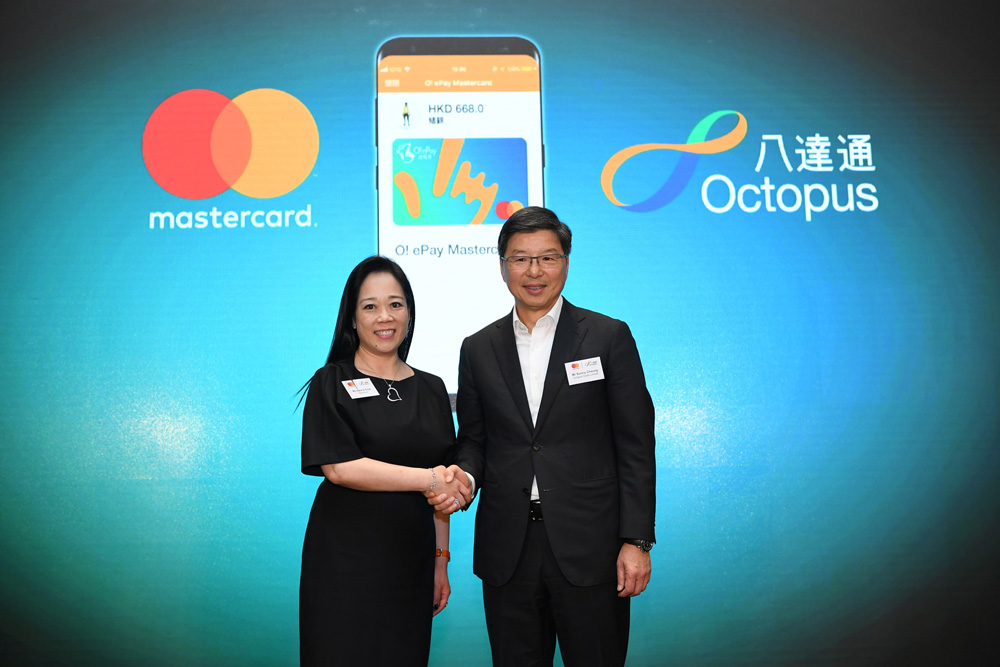 圖:八達通行政總裁張耀堂(右)及Mastercard香港及澳門總經理陳一芳宣布推出O!ePay Mastercard,令網上支付更普及