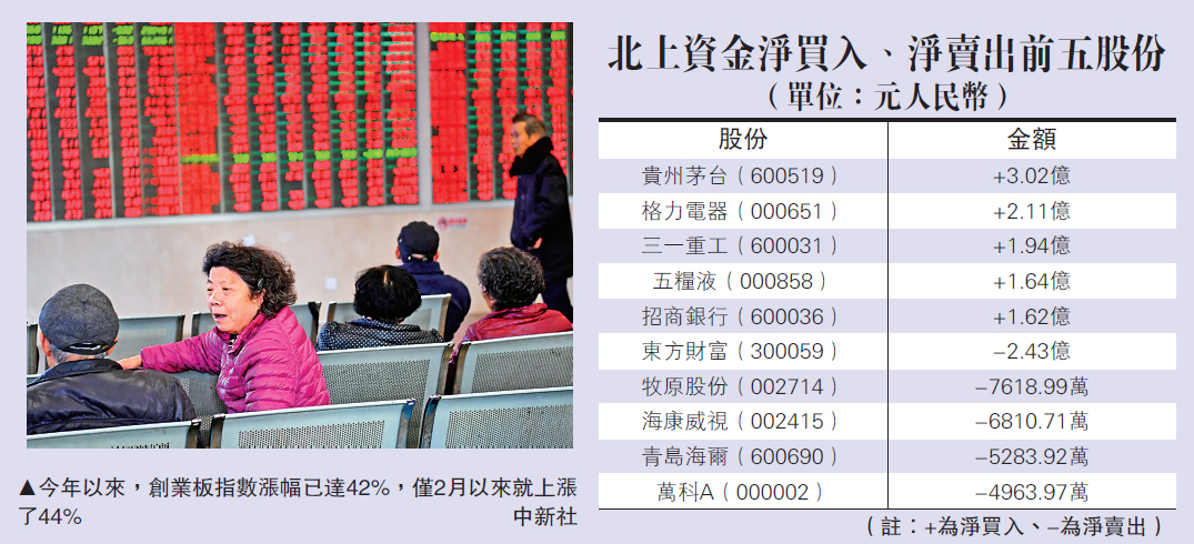 圖:今年以來,創業板指數漲幅已達42%,僅2月以來就上漲了44%/ 中新社