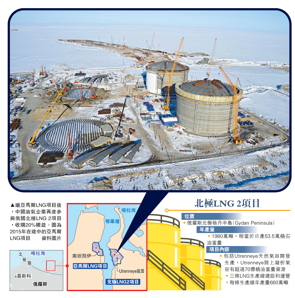 【大公報訊】中國油氣企業將再度與國際石油公司合作開發北極地區的世界級液化天然氣(LNG)項目。25日晚,俄羅斯諾瓦泰克公司(Novatek)宣布,已與中石油旗下中油國際(CNODC)、中海油(CNOOC)簽署約束力協議,兩家中國企業將分別收購由諾瓦泰克公司牽頭開發的北極LNG 2項目(Arctic LNG 2)10%的權益。北極LNG 2項目預計在今年下半年作最終投資決定,首條液化生產線預計2023年投產。