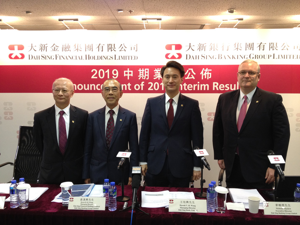 圖左起:大新金融執行董事王伯凌、行政總裁黃漢興,大新銀行董事總經理王祖興、執行董事麥曉德/大公報記者趙建強攝