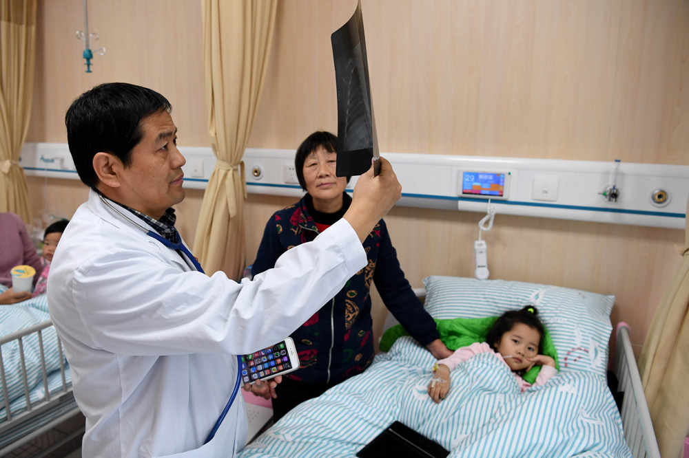 圖:深圳市試點住院收費「一口價」。圖為內地兒科醫生在為小患者診治\新華社