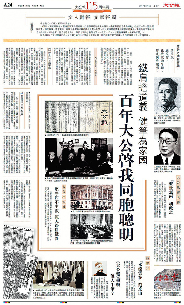 圖:《大公報》一百一十五周年報慶紀念專版首版闡釋創辦伊始\大公報資料圖片