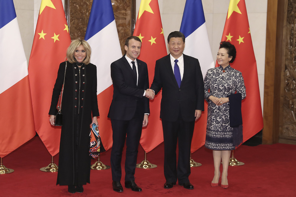 馬克龍表示,很高興首次來華進行國事訪問。法中友好歷史悠久。我願通過此訪,同習近平主席就法中關係和重大國際問題上合作交換意見,加強兩國互信,增進法中關係、歐中關係。「一帶一路」倡議十分重要,法國願積極參與。法方也願同中方一道,為應對氣候變化等國際社會面臨的共同挑戰作出貢獻,我相信,在雙方共同努力下,此訪將成為法中關係新的里程碑。