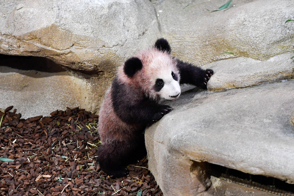 圖:首隻在法國出生的熊貓寶寶「圓夢」13日與公眾見面/新華社