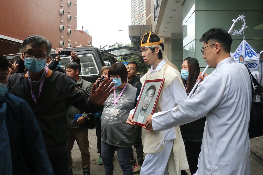 圖:死者鄧仁欽出殯,家屬神情哀慟