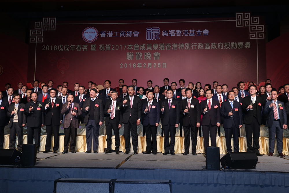 圖:香港工商總會與築福香港基金會日前在灣仔會展舉行新春聯歡晚會活動,賓主祝酒