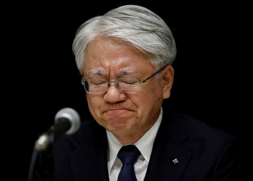 圖:神戶製鋼所社長川崎博也宣布辭職/路透社
