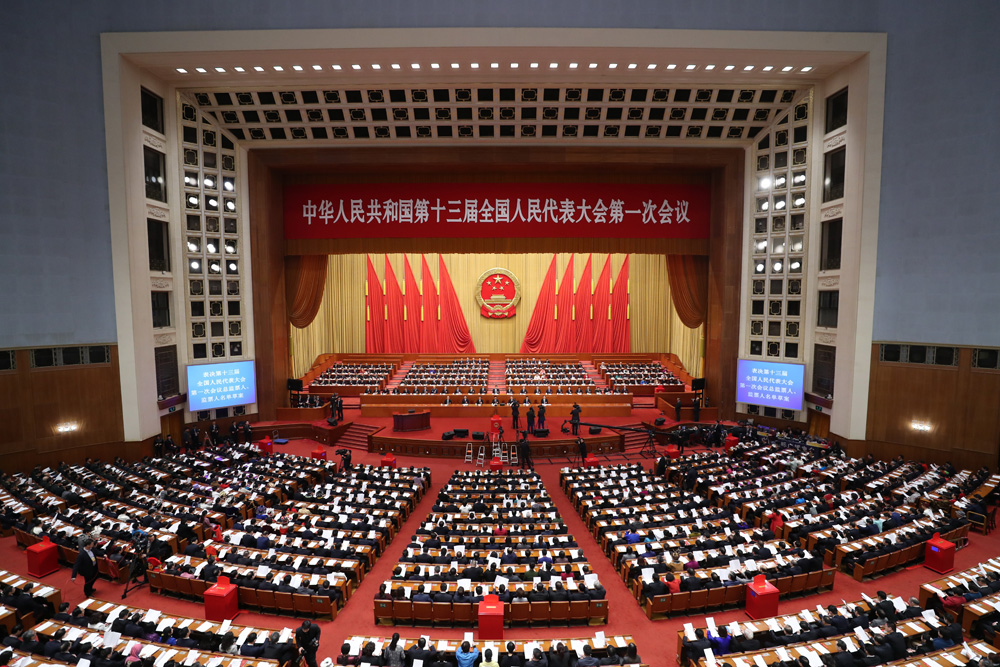 圖:3月11日,十三屆全國人大一次會議在北京人民大會堂舉行第三次全體會議/新華社