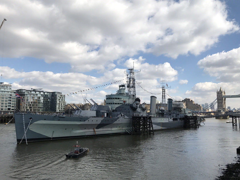 「貝爾法斯特」號(HMS Belfast)始建於1936年,在1938年正式建成下水,成為當時英國皇家海軍最先進的主力戰艦之一,在第二次世界大戰中立下卓著戰功,包括參與了諾曼第登陸,擊沉和重創德國戰艦等。
