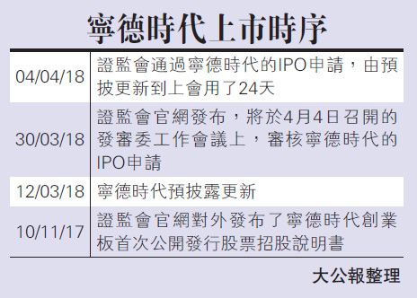 □備受關注的「獨角獸」寧德時代新能源昨日成功過會,獲中國證監會批准在深圳證券交易所上市。這是繼富士康、藥明康德後,第三家通過IPO的「獨角獸」企業。投行人士表示,寧德時代順利過會是應該的,作為「獨角獸」享有IPO綠色通道也在情理之中。\大公報記者 馮健坤