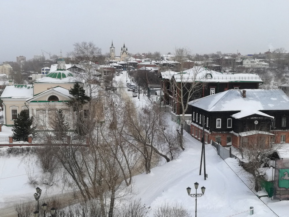 托木斯克是西伯利亞經典大學城,有着「西伯利亞牛津」之稱。從新西伯利亞坐火車大約四小時半,即抵達托木斯克。由於火車上開盡了暖氣,一上火車已感受到車廂內的酷熱,比室外攝氏零下十七度的氣溫差距甚大,幾乎要把身上的保暖衣物全脫下來。到達後,先前往列寧廣場。那兒的列寧塑像的右手指向西面的粉紅東正教堂,像是在跟教堂揮手似的。附近有一條路徑走上一座小山,然後便到了歷史博物館。該館特別之處並不在於博物館本身,而是博物館頂層的木製瞭望塔。從這裏可一眼飽覽托木斯克市的景色,尤其周邊的西伯利亞特色木屋以及蓋滿白雪的街道。不過,站在塔頂上的感覺卻是特別冷,加上刺骨的寒風,令手腳都僵硬起來了。