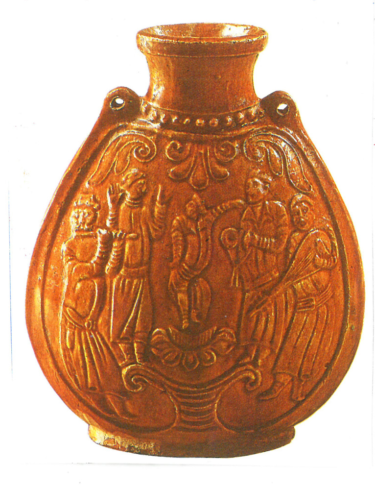 黃釉,最早應見於漢代陶器,屬低溫釉,以含鐵的天然礦物為着色劑,基本上是鉛釉;與以「三價鐵離子」着色的高溫石灰釉有別。若論最澄明潔潤而紋飾甚具藝術性的,筆者首推南北朝時期北齊燒造的桔黃釉陶瓷器,尤以河南窰所出雙繫扁壺最精美;迄今存世量極少,十分珍貴。