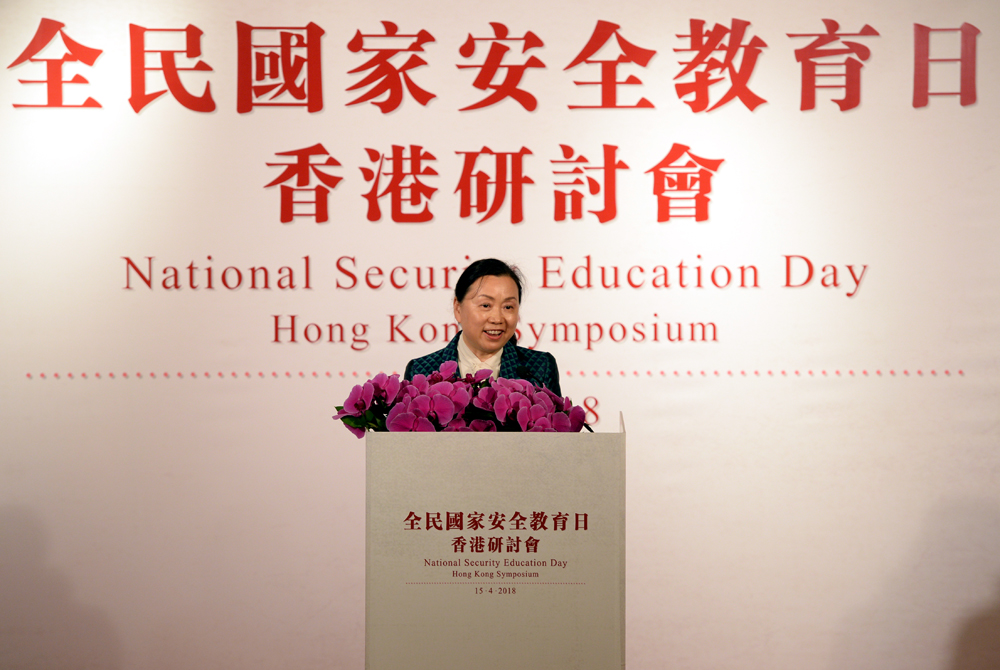 全國人民代表大會常務委員會法制工作委員會副主任鄭淑娜昨日出席「全民國家安全教育日」香港研討會時,講述《國家安全法》的內容;她指出,香港特區居民的中國公民應當履行維護國家安全的義務,特區要按照基本法23條規定自行立法。鄭淑娜又指,維護國家安全的責任不僅限於23條立法,在網絡安全、反恐怖主義、處置重大突發事件等方面,特區也負有與內地加強合作,維護國家安全的責任。/大公報記者 朱晉科