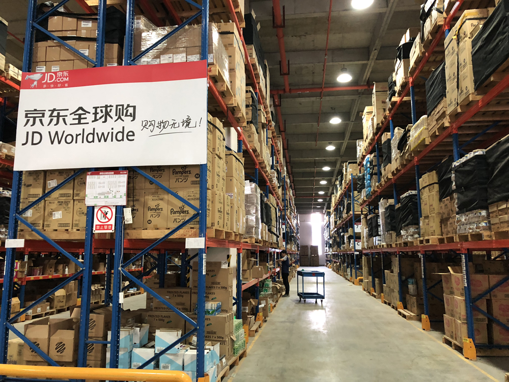 4月15日,在廣州南沙保稅港區物流區的「京東全球購」倉庫裏,倉庫工作人員24小時「火力全開」,穿梭於堆滿貨物的貨架間,快速的分揀打包後,一個個包裹被放上流水線。據介紹,這些包裹是京東「4.15」活動中下單的跨境電商商品,很快會被裝車配送到消費者手上。