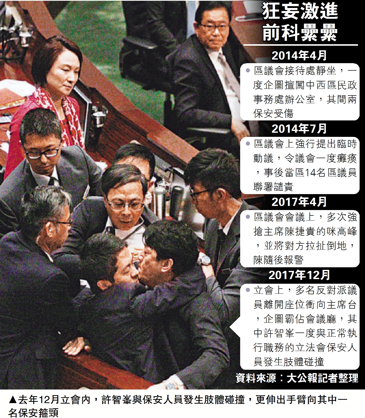 圖:去年12月立會內,許智峯與保安人員發生肢體碰撞,更伸出手臂向其中一名保安箍頸