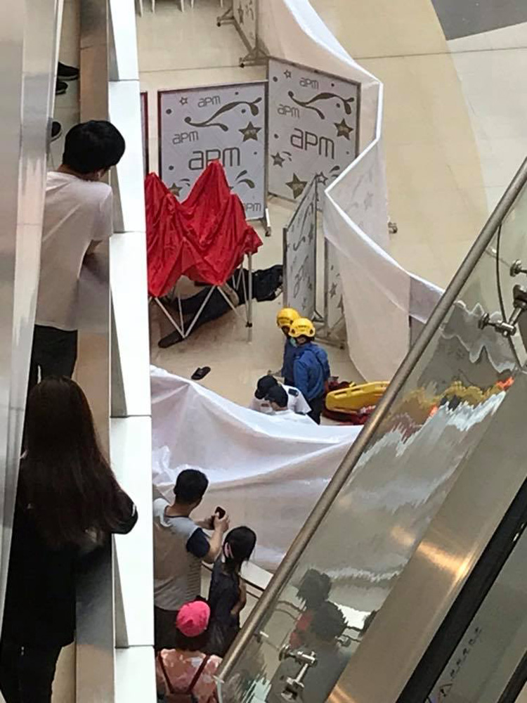 【大公報訊】人潮如鯽的觀塘apm商場,昨午有一名41歲女子突從四樓攀越圍欄,直墮商場大堂,傳出巨響,途人受驚四散走避。救護員接報到場,證實女事主氣絕身亡,警方正調查她自尋短見原因。