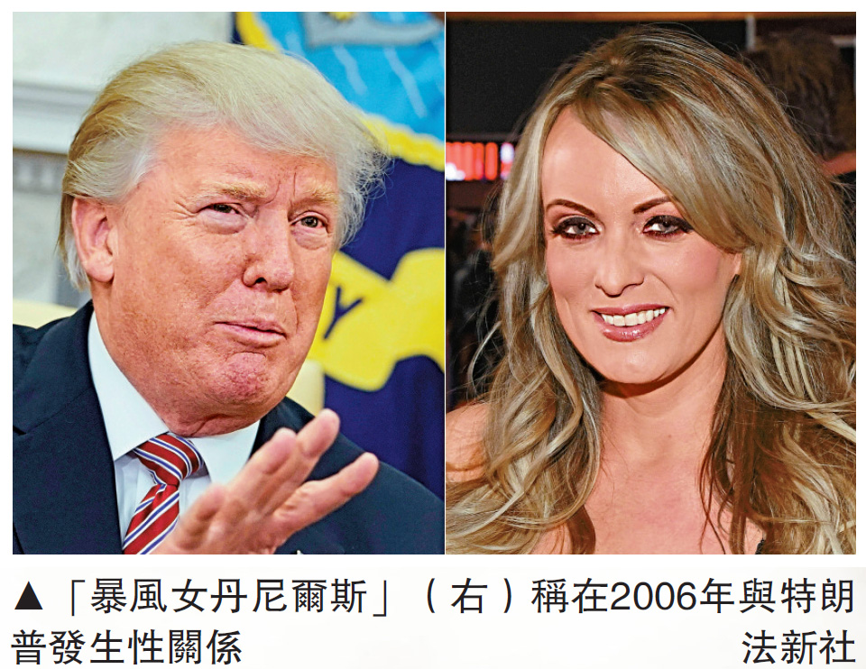 圖:「暴風女丹尼爾斯」(右)稱在2006年與特朗普發生性關係\法新社