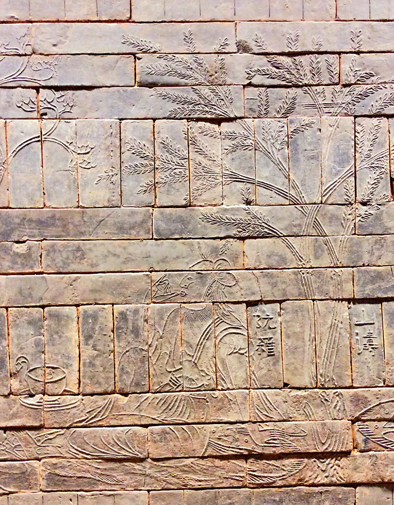 模印磚畫最早出現於秦代,專家考證大型磚印壁畫的製作過程:先在整幅絹上畫好,分段刻成木模,印在磚坯上,再在每塊磚的側面刻就行次號碼,待磚燒成,依次拼對而成。
