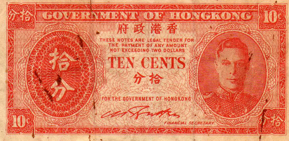 圖:五十年代由港英政府發行的十仙(一毫)紙幣\作者供圖