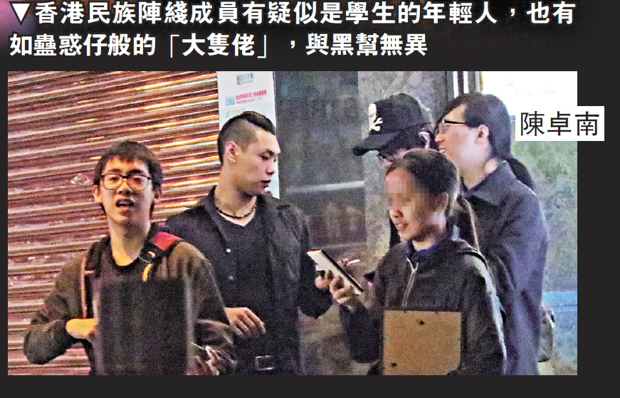 圖:香港民族陣綫成員有疑似是學生的年輕人,也有如蠱惑仔般的「大隻佬」,與黑幫無異