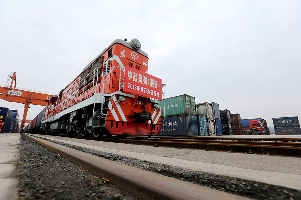 圖:二○一八年三月七日中歐班列「長安號」駛出西安新築車站/中新社