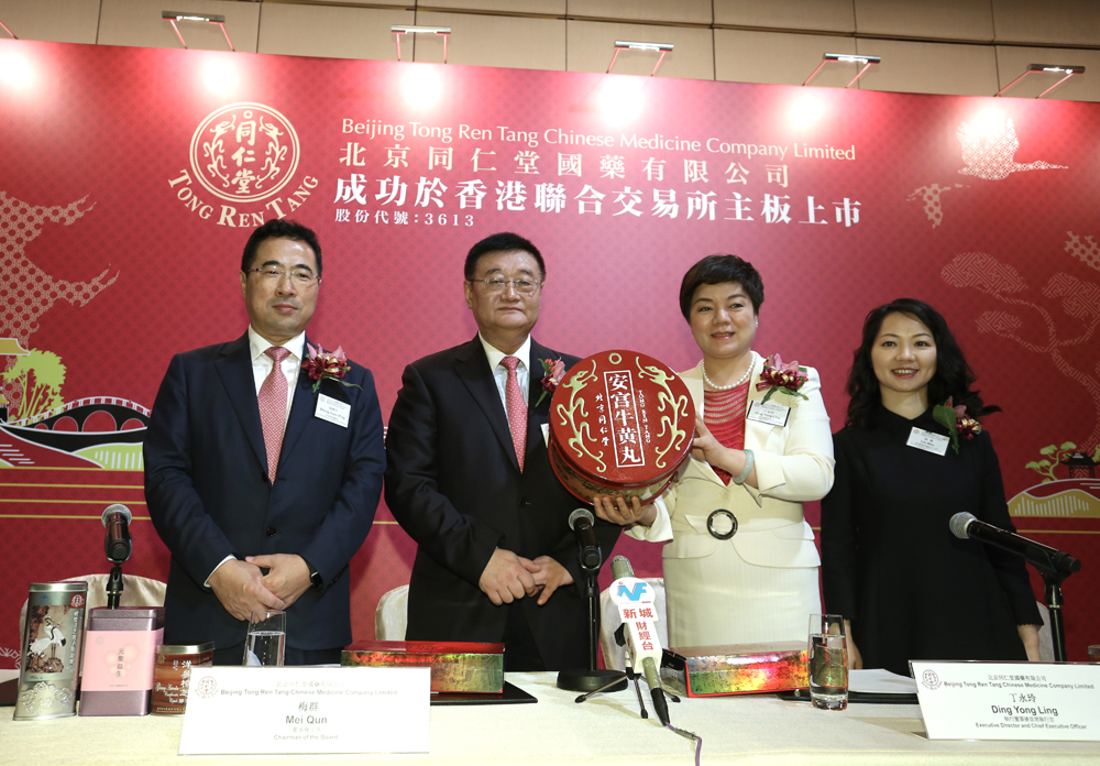 圖:同仁堂國藥主席梅群(左二)、執行董事兼首席執行官丁永玲(右二)、執行董事兼副總經理張煥平(左一)、執行董事兼財務總監及公司秘書林曼(右一)