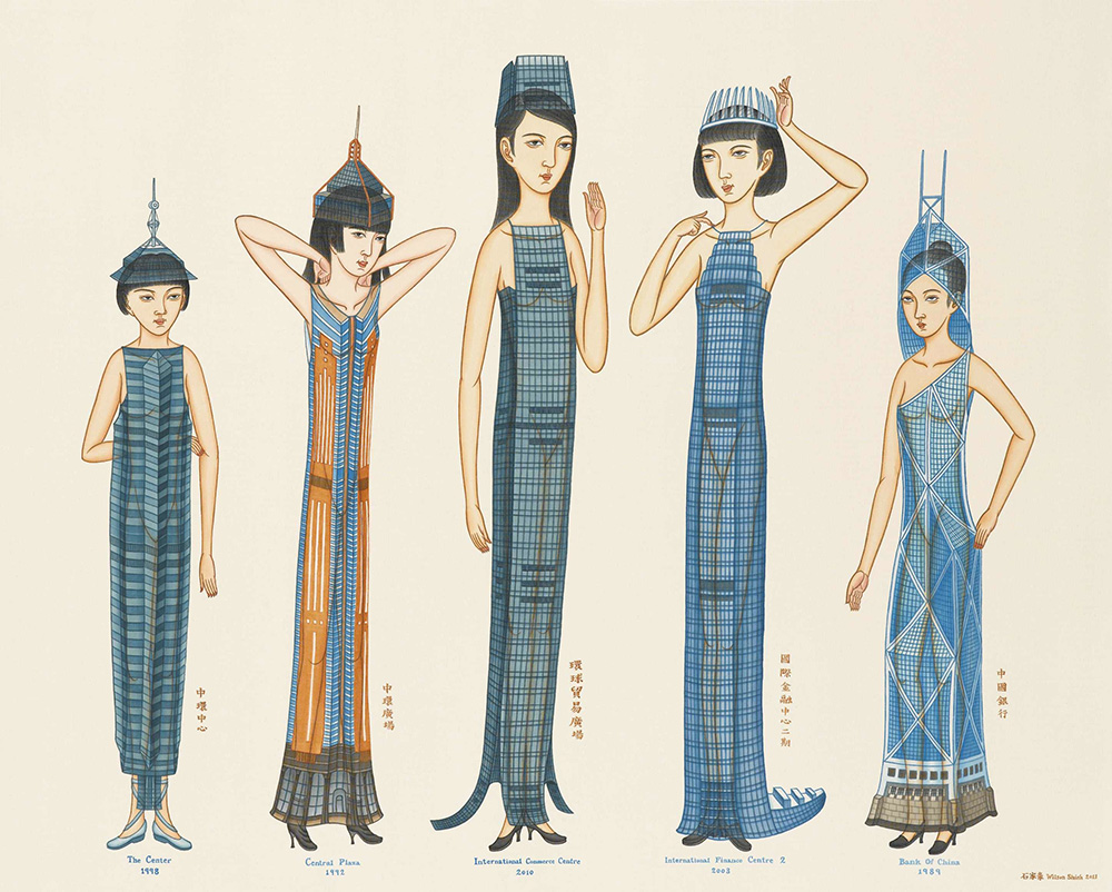 圖:《香港五幢最高大樓》,2011,水墨設色絹本,90×115厘米\作者供圖